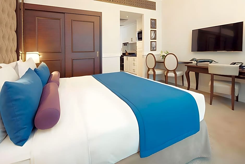 The Premium Studios offer a breathtaking or partial sea view. They come with King Size Bed, and fully equipped kitchenettes for your convenience. Studio amenities include Floris toiletries, flat screen 55-inch satellite TV, coffee and tea making facilities, and complimentary WiFi.